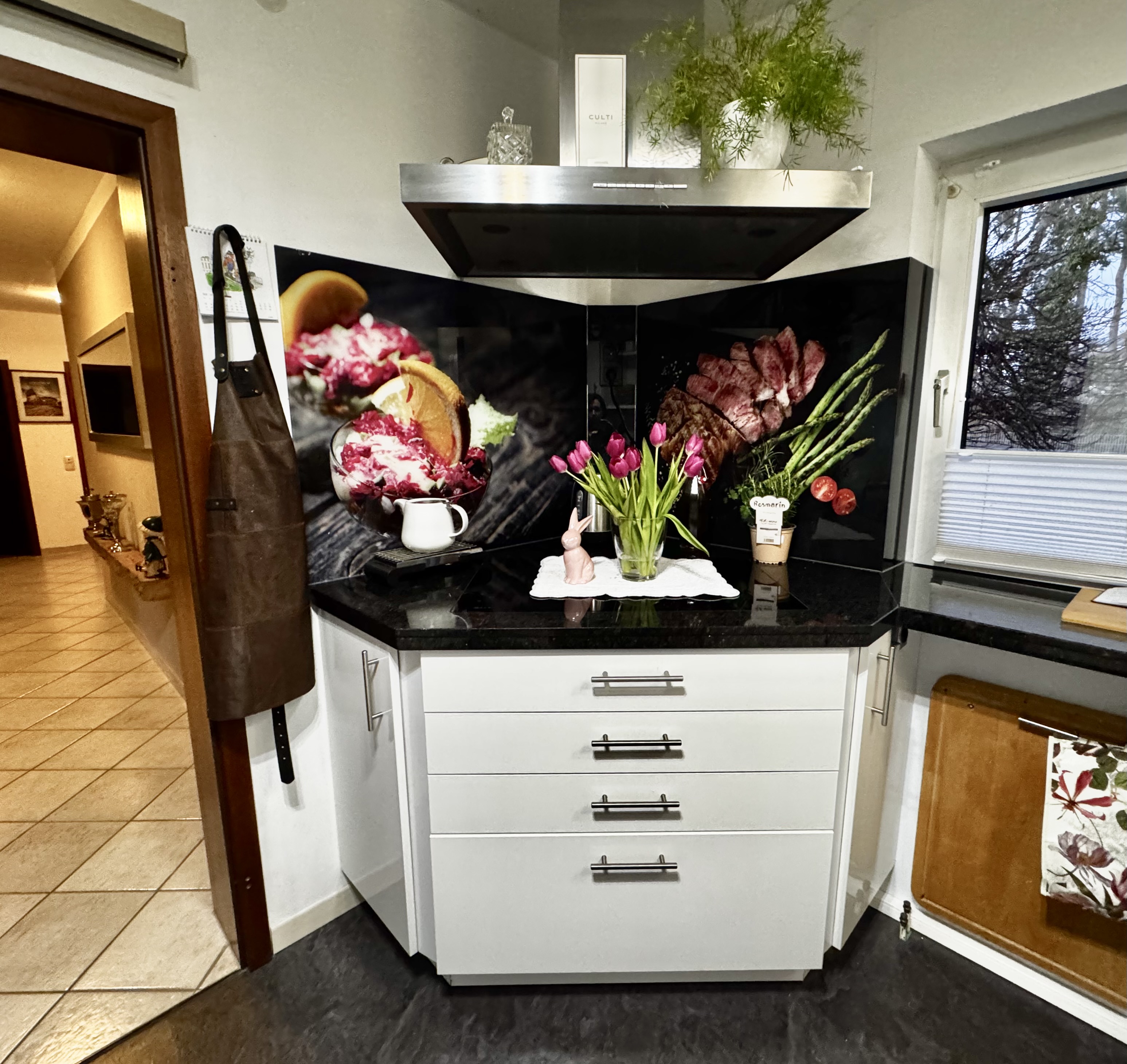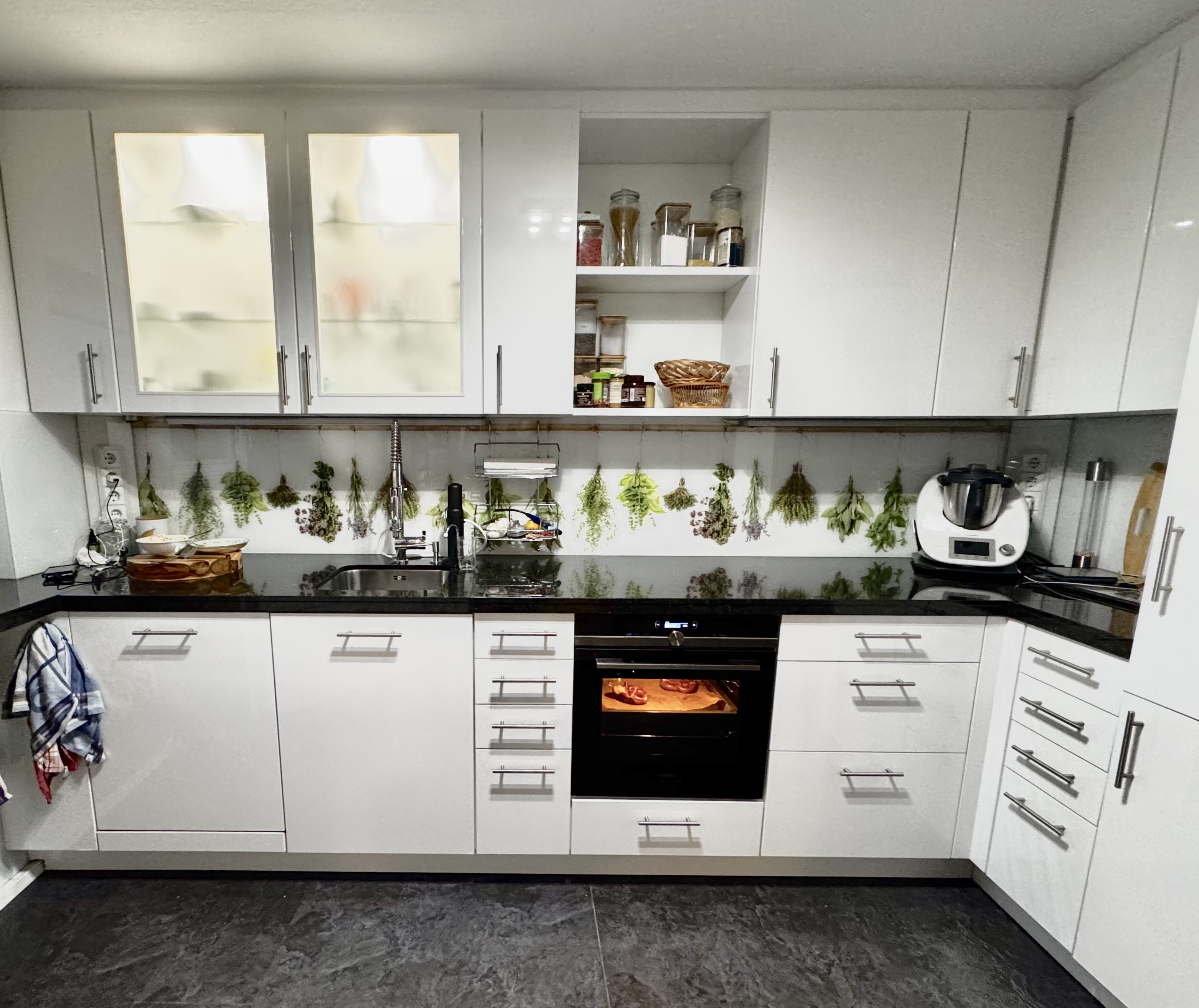 Die moderne Einbauküche inklusive Einbaugeräten - ein weiteres Highlight dieser Wohneinheit - fügt sich harmonisch in das Raumkonzept ein und lässt keine Wünsche offen. Die neuwertige und sehr gepflegte Küche kann vom Käufer übernommen werden.