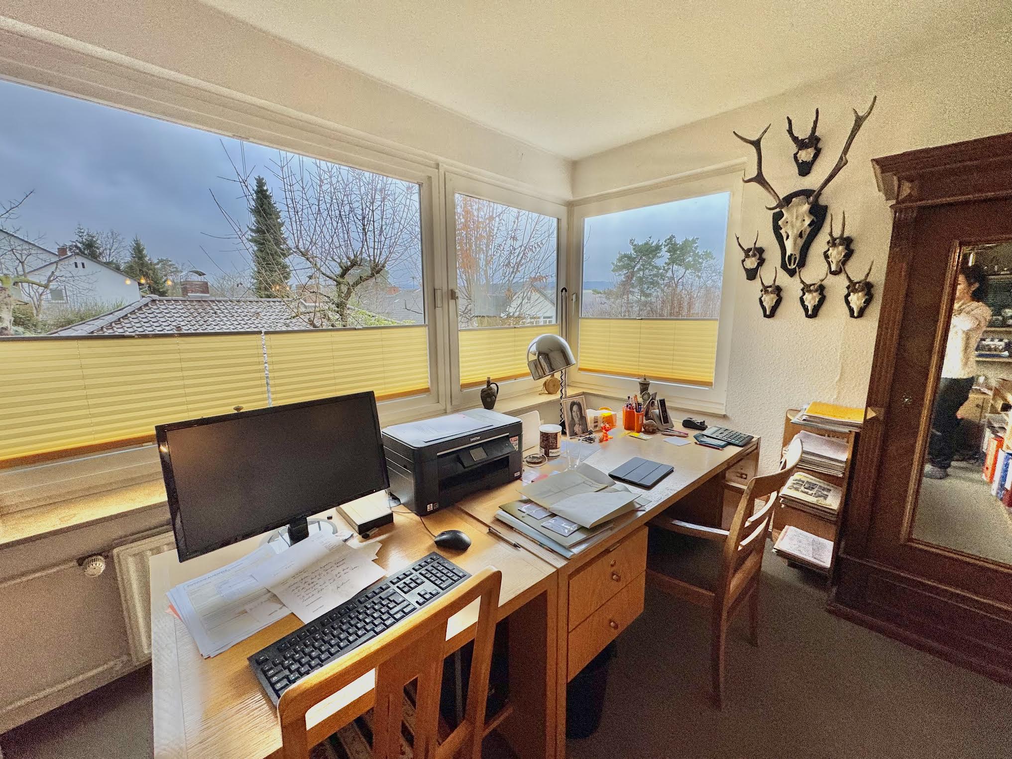 Die Hauptwohnung in der oberen Etage (ca. 124 qm groß) wird derzeit noch von den Eigentümern selbst bewohnt. Die Verkäufer planen aus familiären Gründen nach Süddeutschland umzusiedeln, dies ist auch der Grund für den geplanten Verkauf dieser Immobilie.