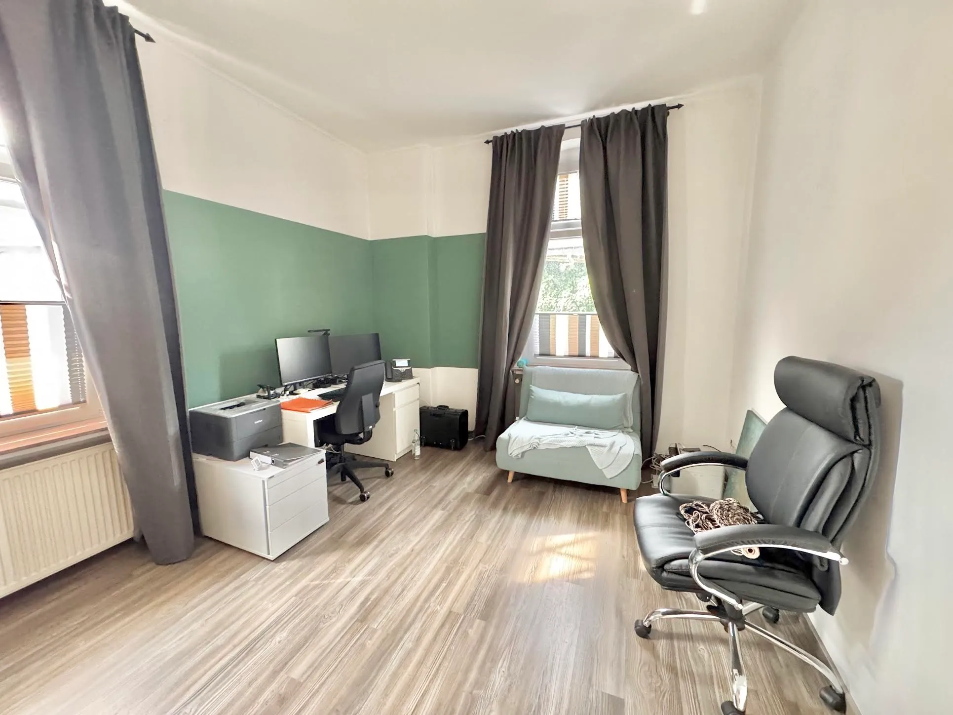 Das zweite, kleinere Schlafzimmer wird derzeit von den Mietern der Wohnung als Arbeitszimmer genutzt.
